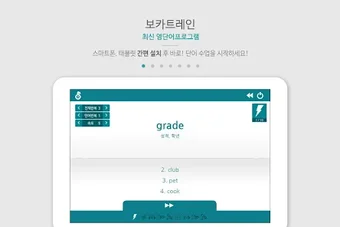 보카트레인은 안드로이드에서 이용 가능한 교육 및 참고 앱입니다. 사용자는 원하는 수준에 맞게 짧은 시간 동안 어휘 실력을 향상시킬 수 있습니다.